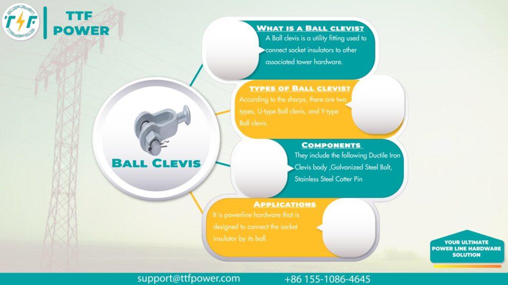 2. Load flexibility—the ball clevis provides angular mobility, which reduces strain on conductors and insulators, allows for smooth line movement, and prevents cracking, snapping, or snagging of high-voltage lines.